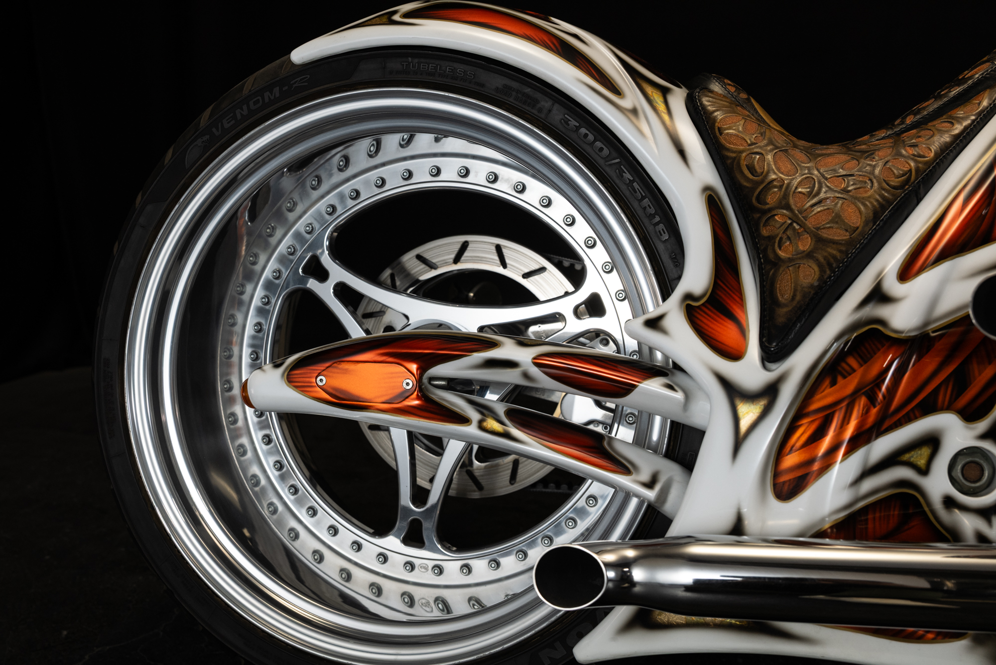ドイツ南部の都市ウルムに工房〈Habermann Performance〉を構えるトーマス・ハバーマンは、1990年代半ばよりEVO Softail用200ワイドタイヤキットを世界で初めて設計・製品化。その後TwinCamの時代に入り、250 / 280 / 300 / 330へと進化するワイドタイヤカルチャーの礎を築きました。ハーレーのエンジン、トランスミッション、フレーム構造を熟知し、理論と実践を兼ね備えた真のマイスター。その存在はヨーロッパのカスタムシーンにおいて揺るぎないものでした。