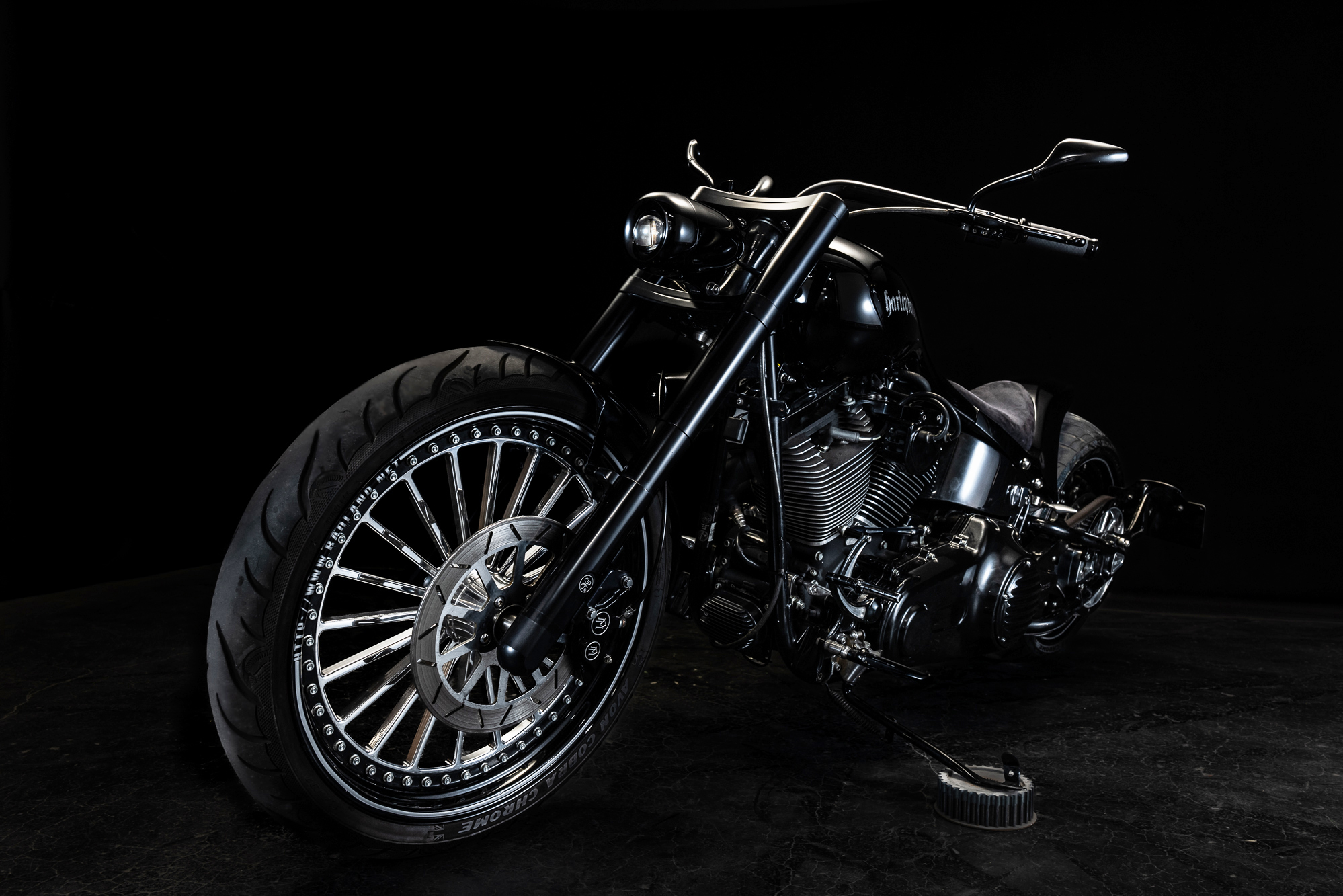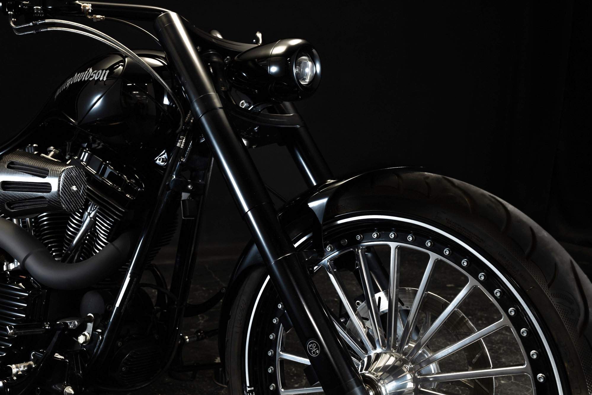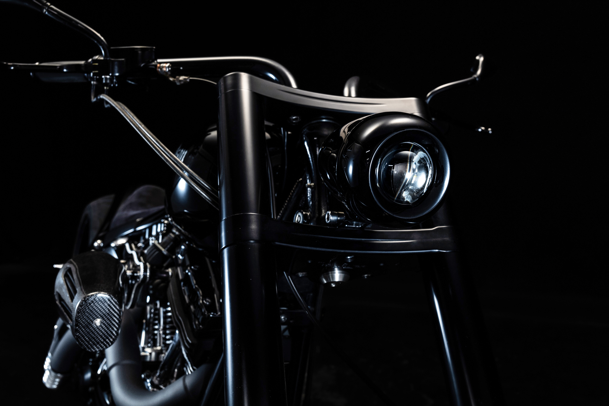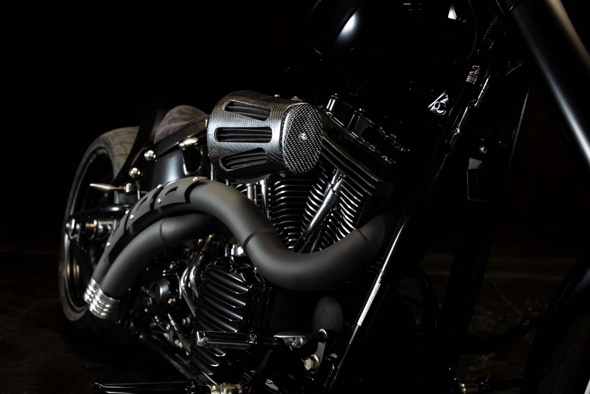 2007年式TwinCam FXSTB (ナイトトレイン / インジェクション仕様) をベースに弊社にて製作。優美な曲線を多用しBAD LAND流ユーロスタイル・カスタムの王道と呼ぶに相応しい仕上がりにて結実。前後ホィールはドイツの名門 : RICK’S MOTORCYCLES社製。また同様にRICK’S MOTORCYCLESにて開発された、300ワイドのタイヤを装着しても、車体全体のセンターバランスを保持する事可能な3次ドライブ方式によりワイドスィングアームをセットアップ。フロントフォークにはオランダの名門 : SJP社のプロダクトを採用等々、完全ワンメイクによるボディーパーツからなる車両全体のデザインとハイエンド・プロダクツが高次元で融合したまさに至極のハイエンド・カスタムです。現車は弊社ファクトリーにて展示中。是非実車をご覧下さい。