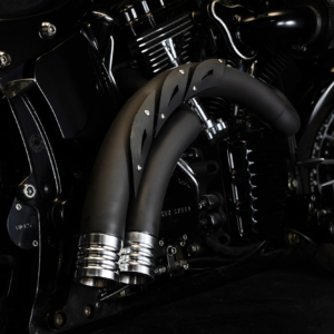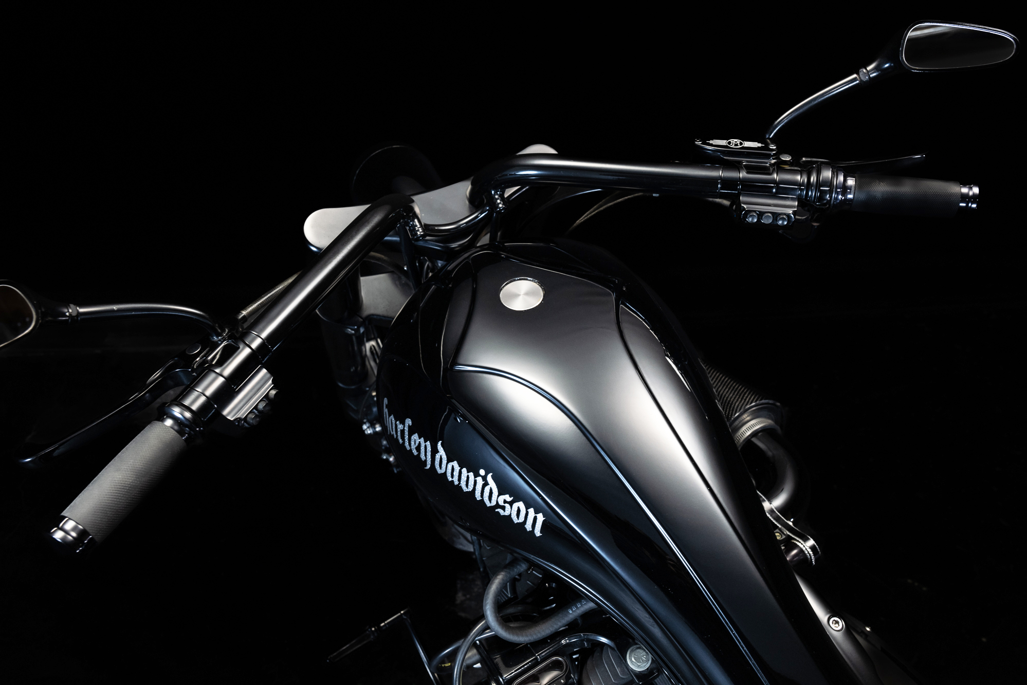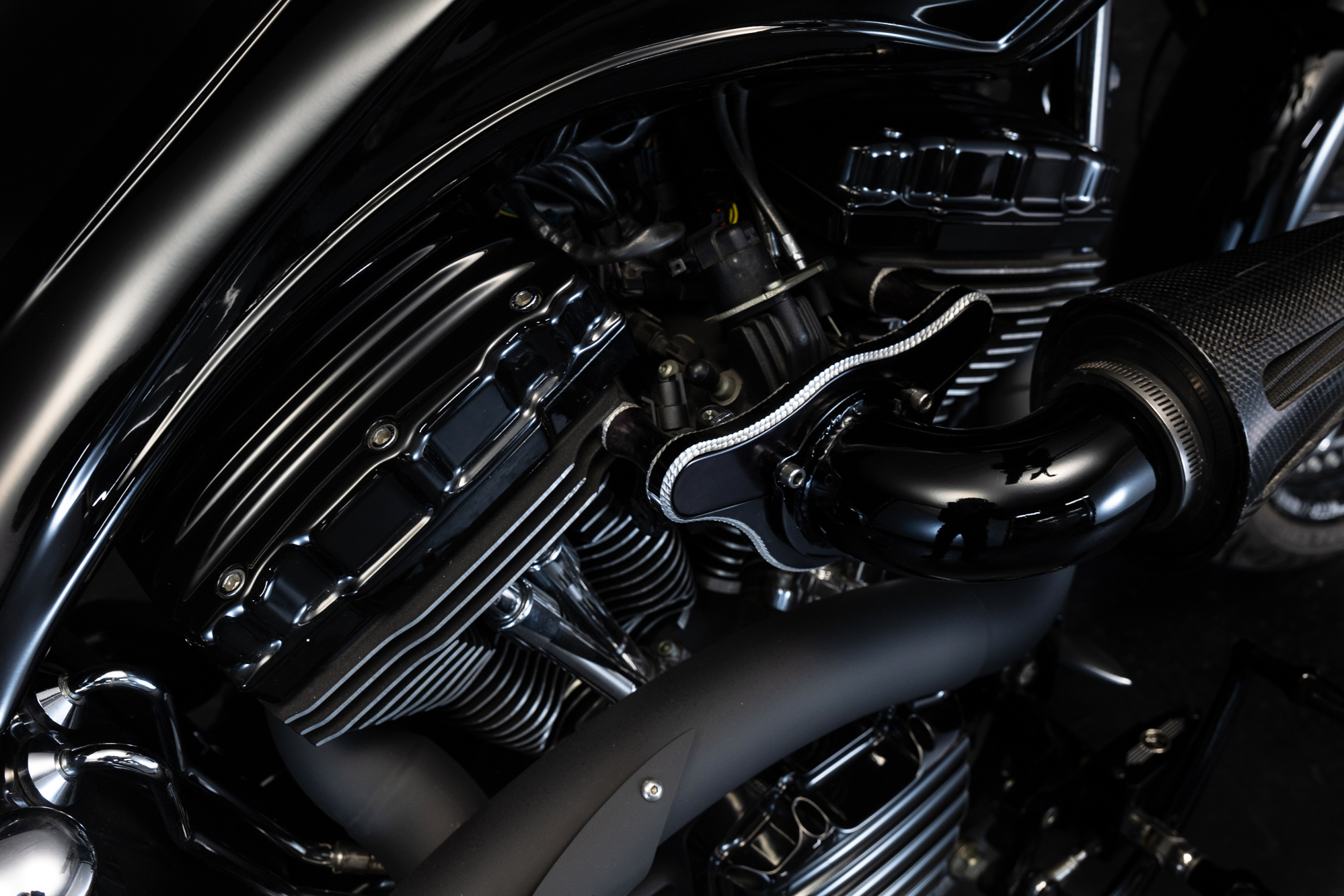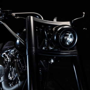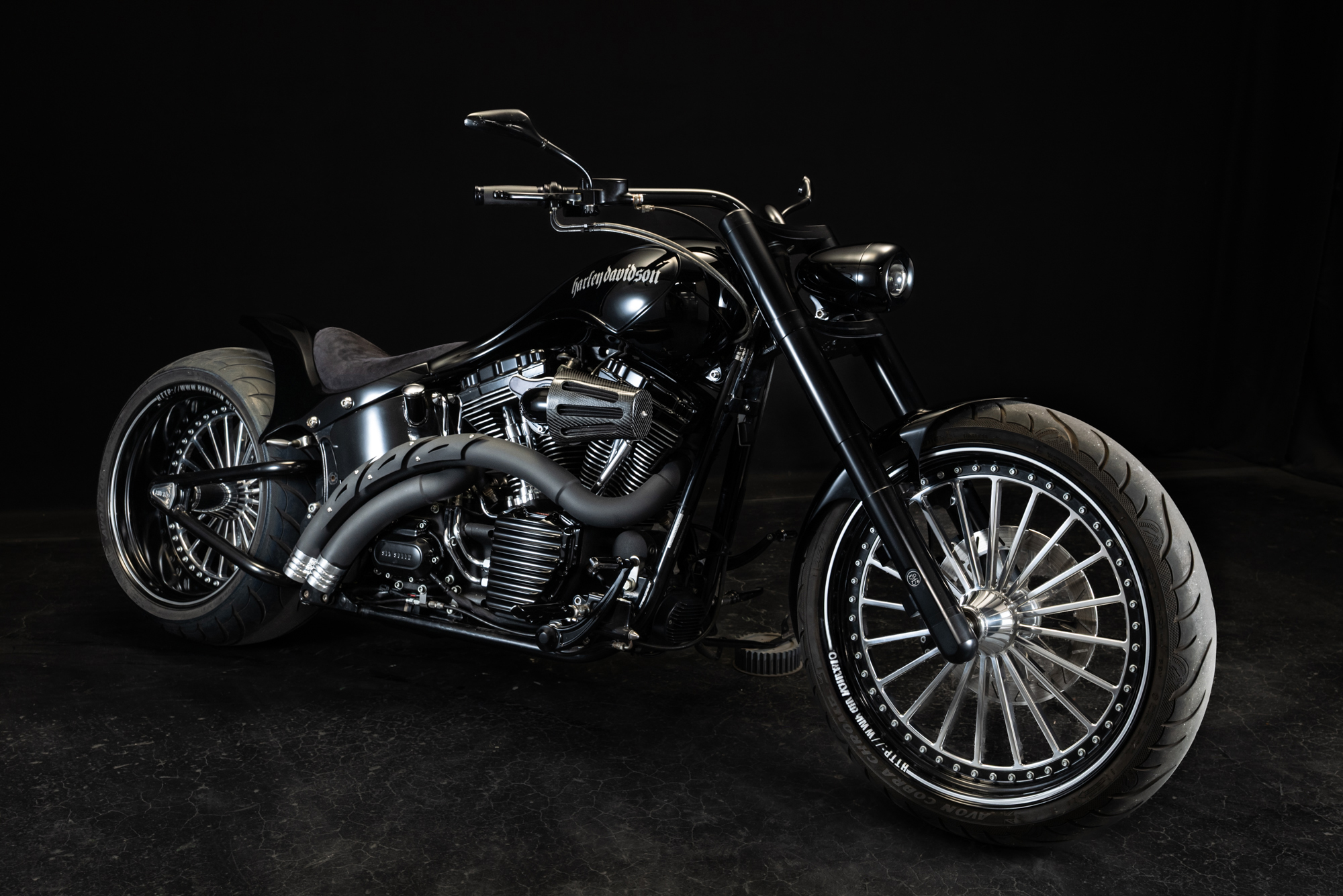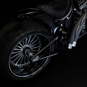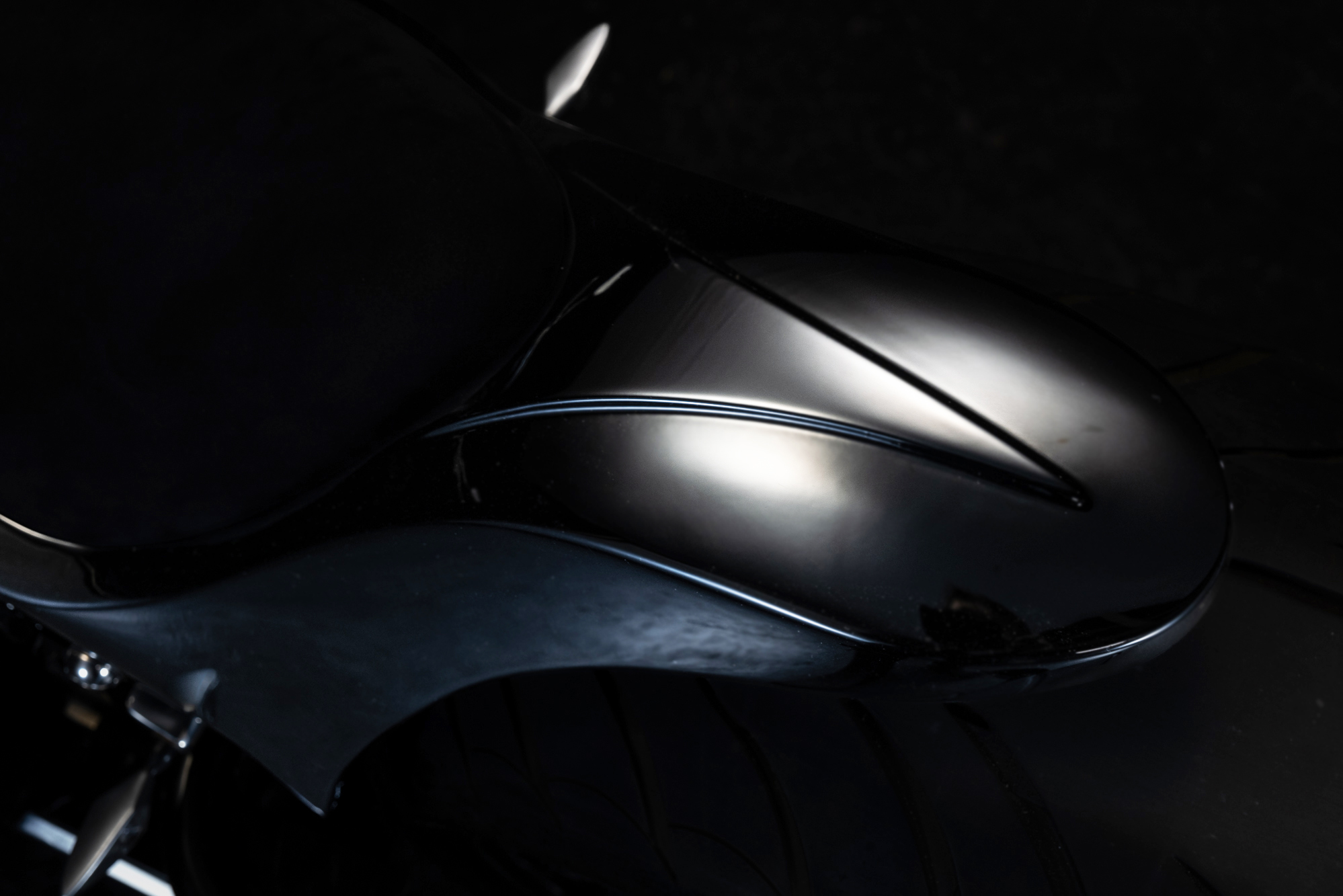 2007年式TwinCam FXSTB (ナイトトレイン / インジェクション仕様) をベースに弊社にて製作。優美な曲線を多用しBAD LAND流ユーロスタイル・カスタムの王道と呼ぶに相応しい仕上がりにて結実。前後ホィールはドイツの名門 : RICK’S MOTORCYCLES社製。また同様にRICK’S MOTORCYCLESにて開発された、300ワイドのタイヤを装着しても、車体全体のセンターバランスを保持する事可能な3次ドライブ方式によりワイドスィングアームをセットアップ。フロントフォークにはオランダの名門 : SJP社のプロダクトを採用等々、完全ワンメイクによるボディーパーツからなる車両全体のデザインとハイエンド・プロダクツが高次元で融合したまさに至極のハイエンド・カスタムです。現車は弊社ファクトリーにて展示中。是非実車をご覧下さい。